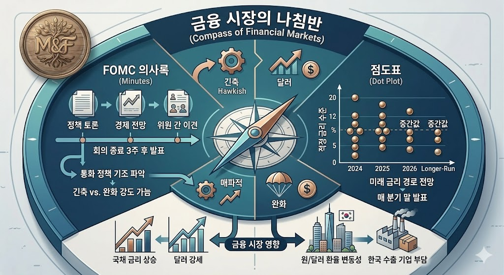 - FOMC 의사록은 통화 정책 결정의 논리적 근거를 제공하며, 점도표는 미래 금리의 정량적 가이드라인 역할을 합니다.