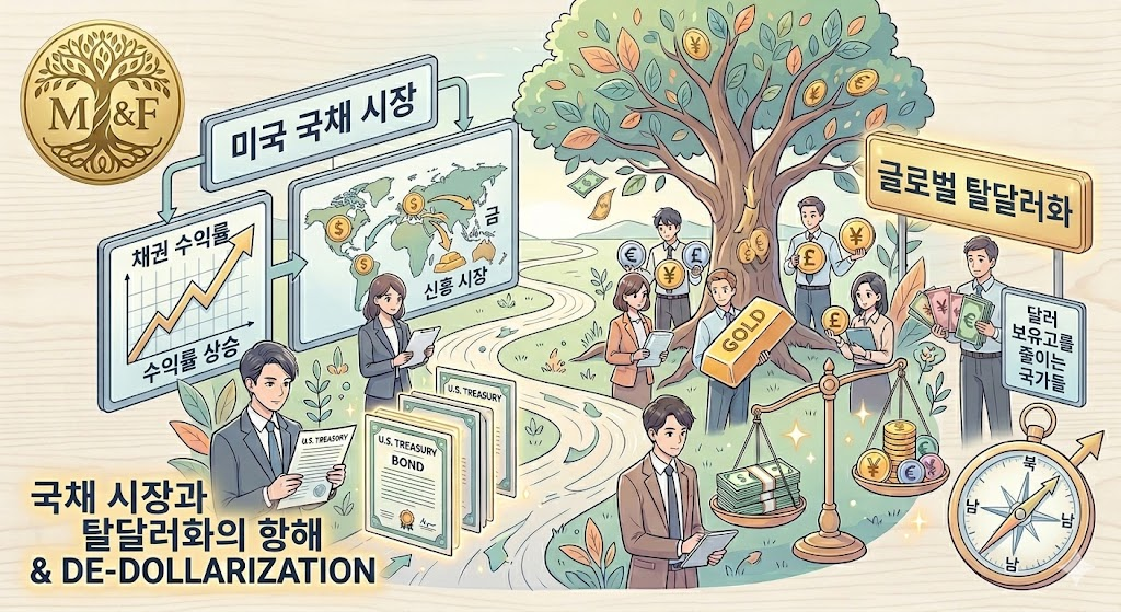 - 중앙은행들의 '탈달러' 행보: 중국, 인도 등 신흥국 중앙은행들이 미국 국채 비중을 줄이고 금(Gold)을 공격적으로 사들이고 있습니다. 2026년 초, 전 세계 외환보유고에서 금의 가치가 국채를 앞지르는 역사적 사건이 발생한 것도 이 때문입니다.
